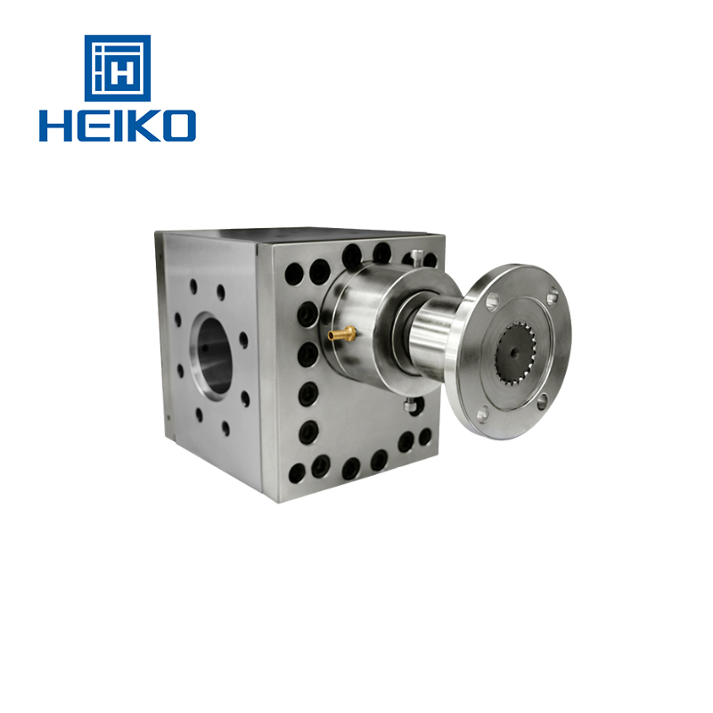 鄭州海科研發新一代片材擠出機用熔體泵,它由泵體和在其內的一對在相對轉動時會逐漸分開再重新互相嚙合的齒輪組成的齒輪泵,泵體的夾層中設有電加熱器,在物料的進、出口處,還分別設有進、出物料壓力計量檢測裝置。